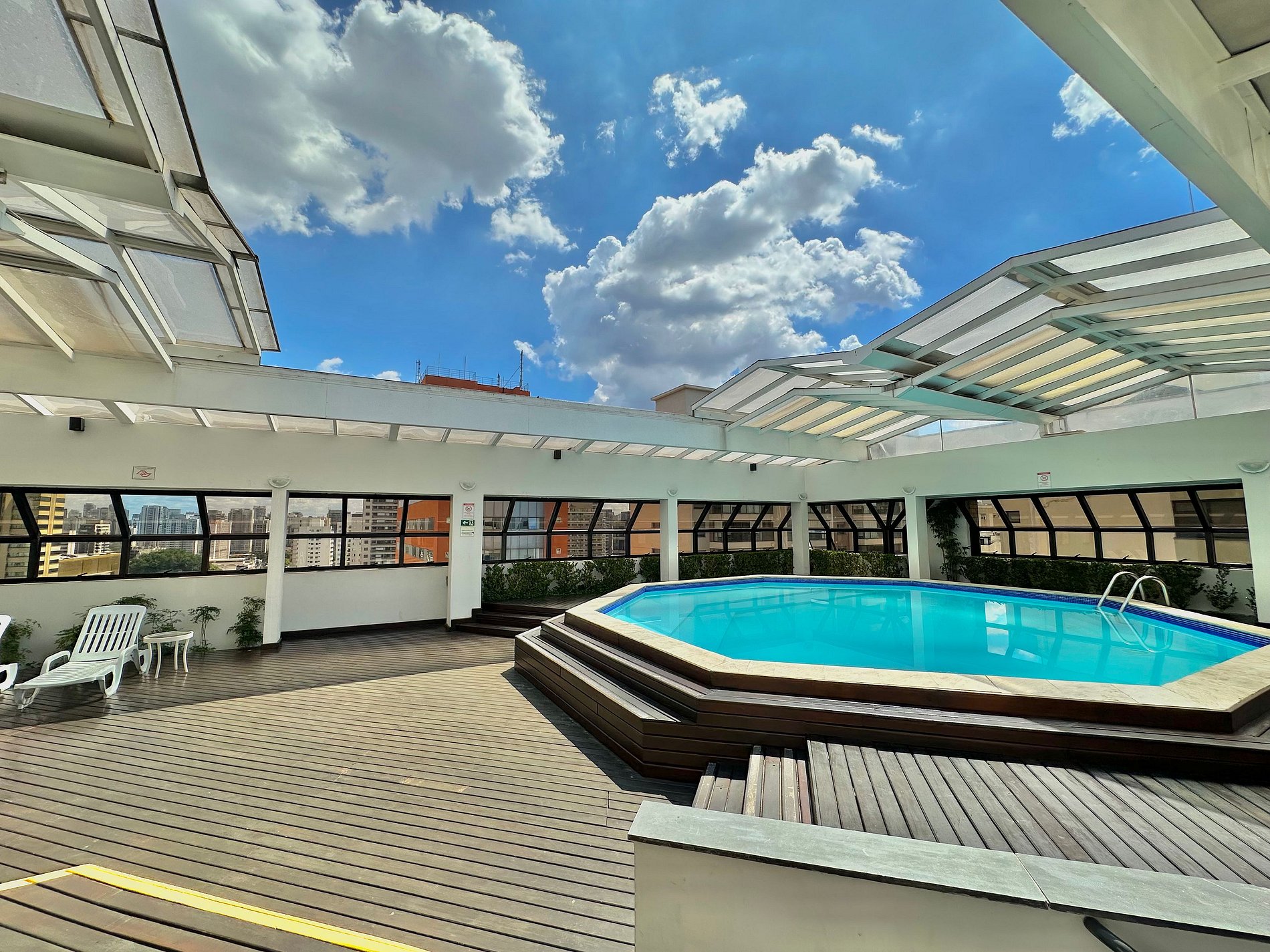 Os hóspedes podem usar a vaga de garagem c/ manobrista, Piscina coberta na cobertura, academia, churrasqueira, quadra de squash e restaurante.