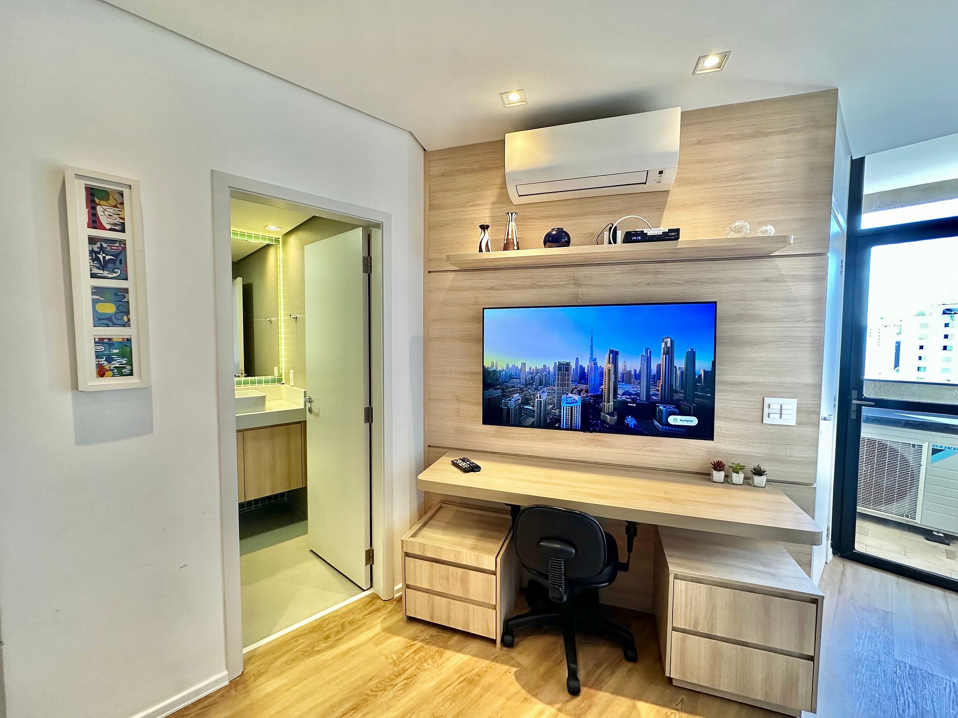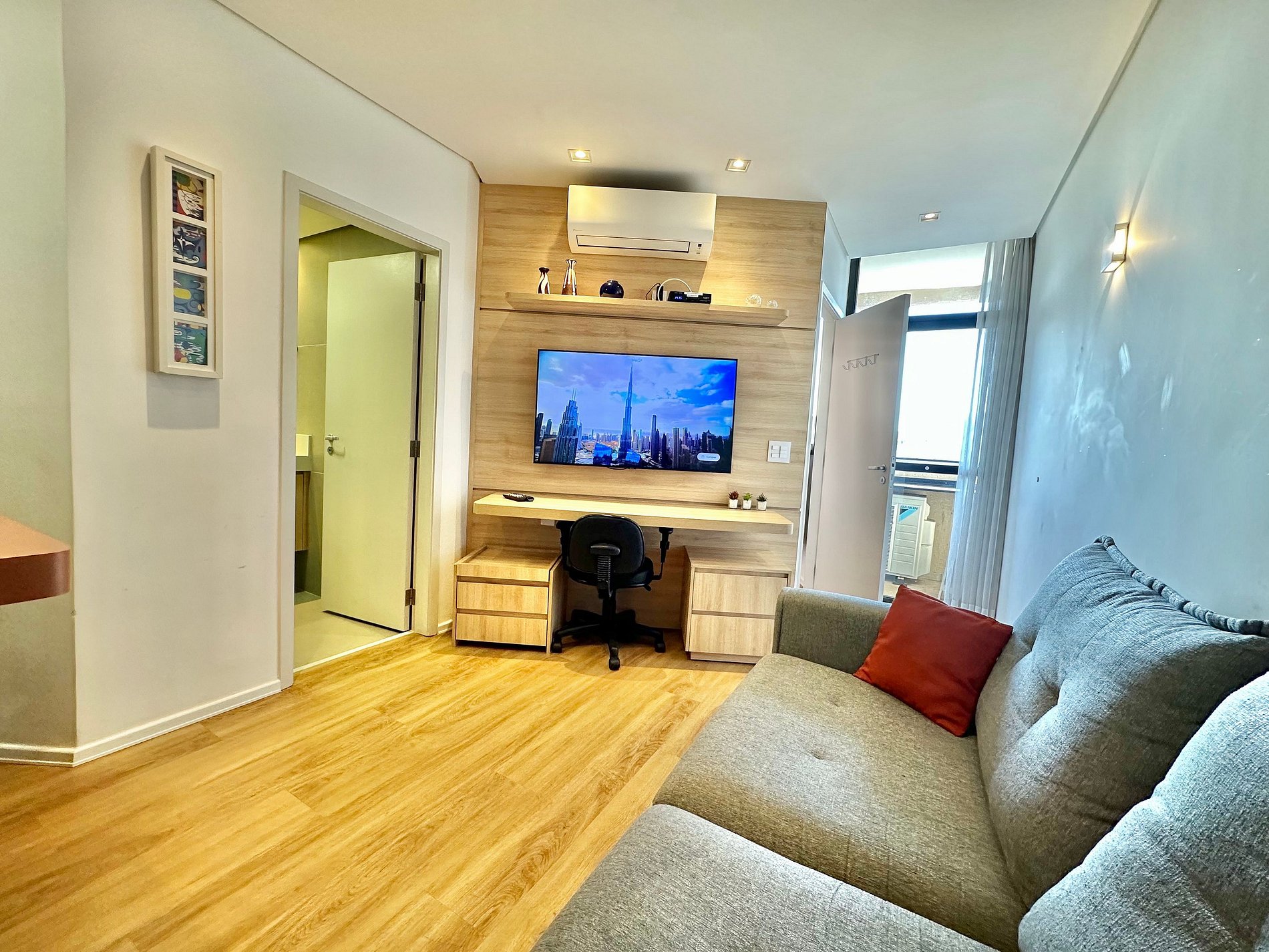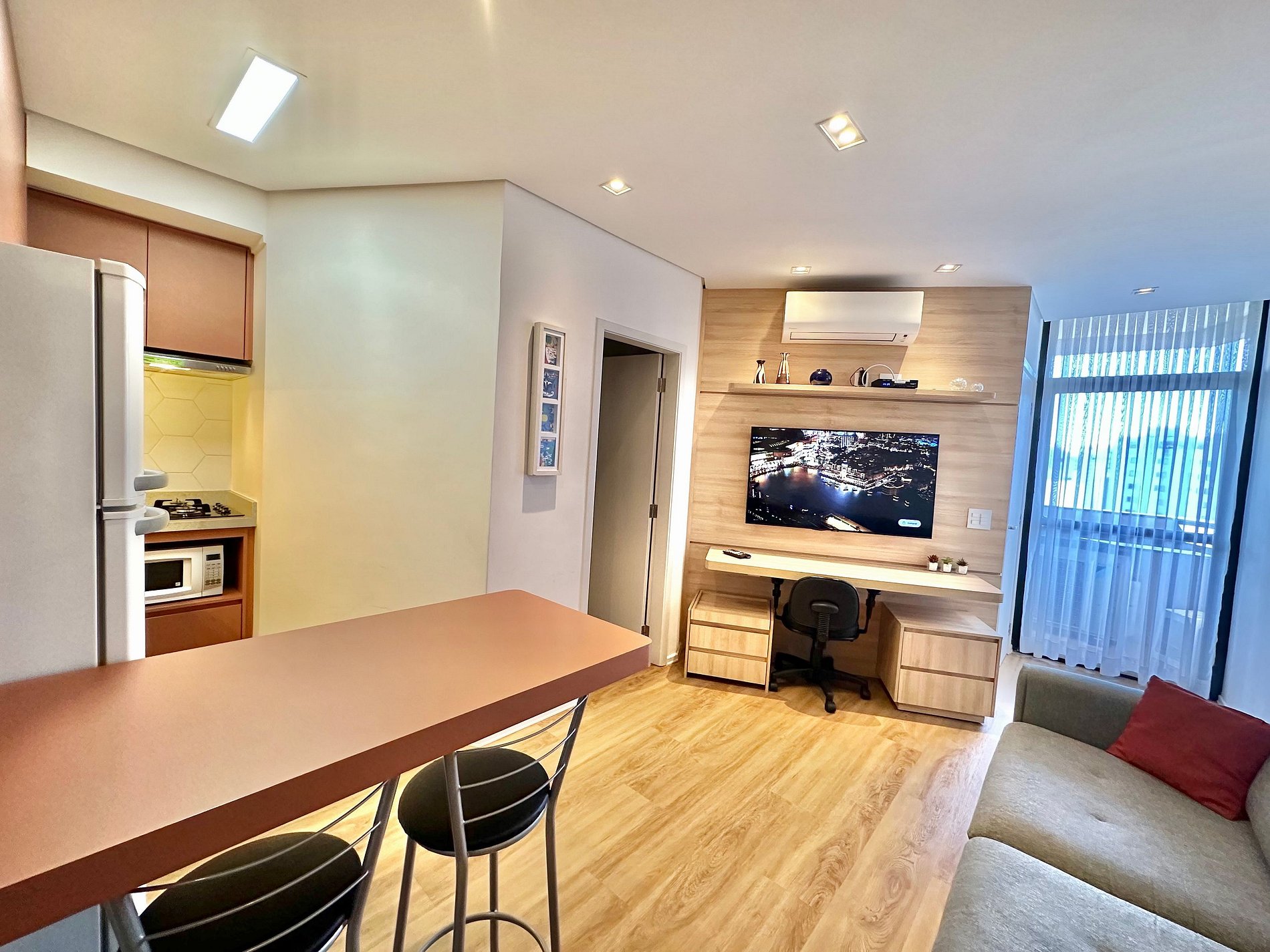 Desfrute de um espaço moderno e aconchegante, ideal para relaxar ou trabalhar.