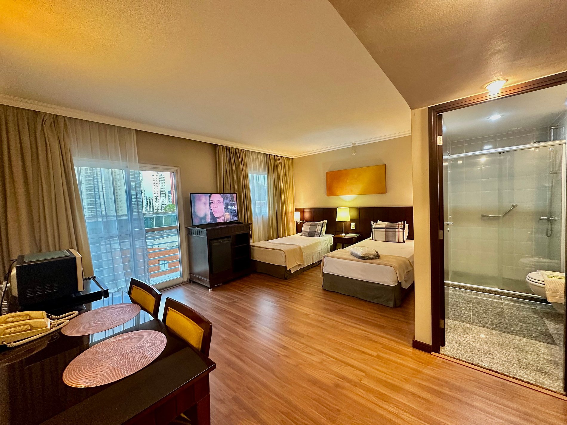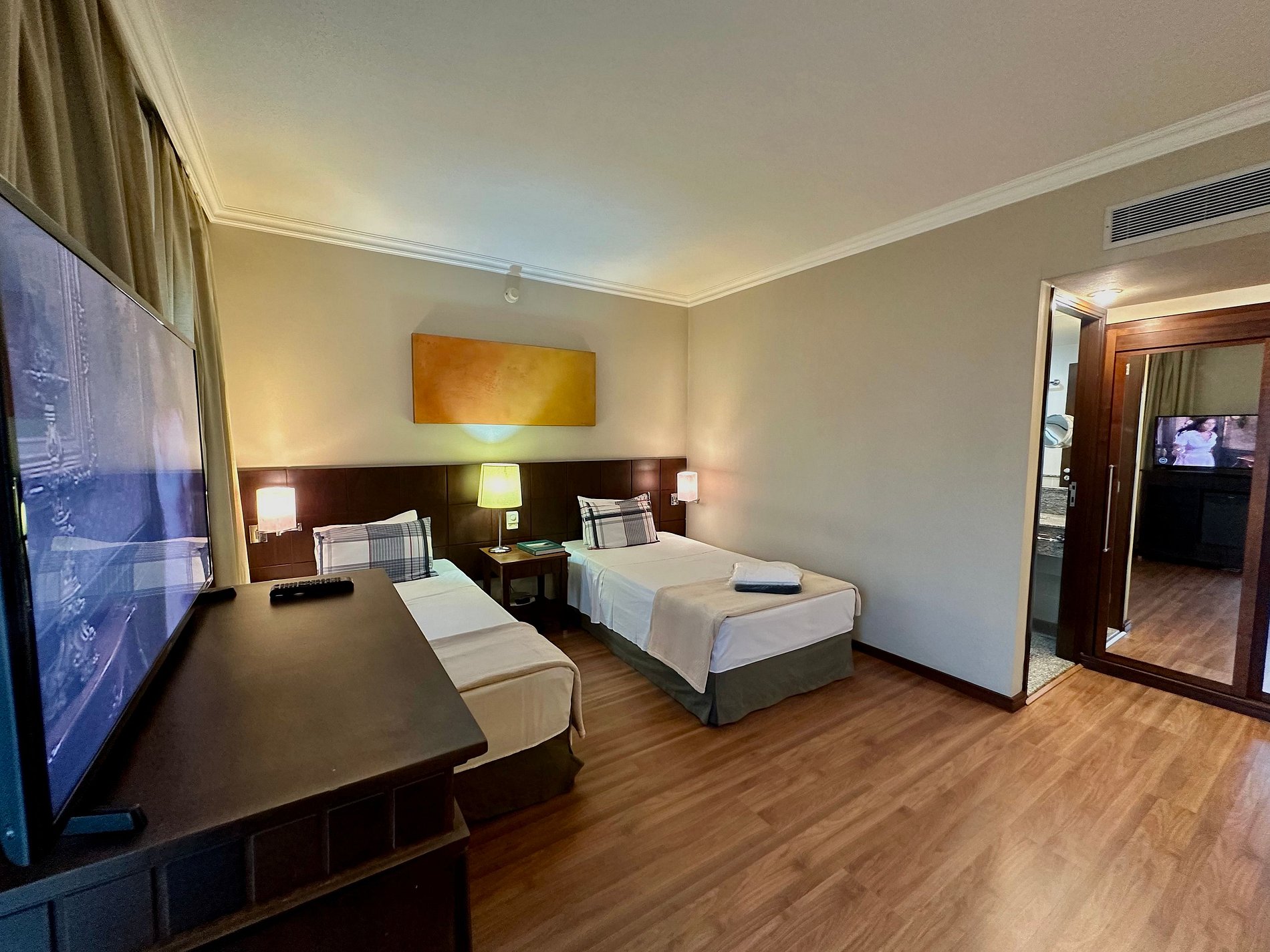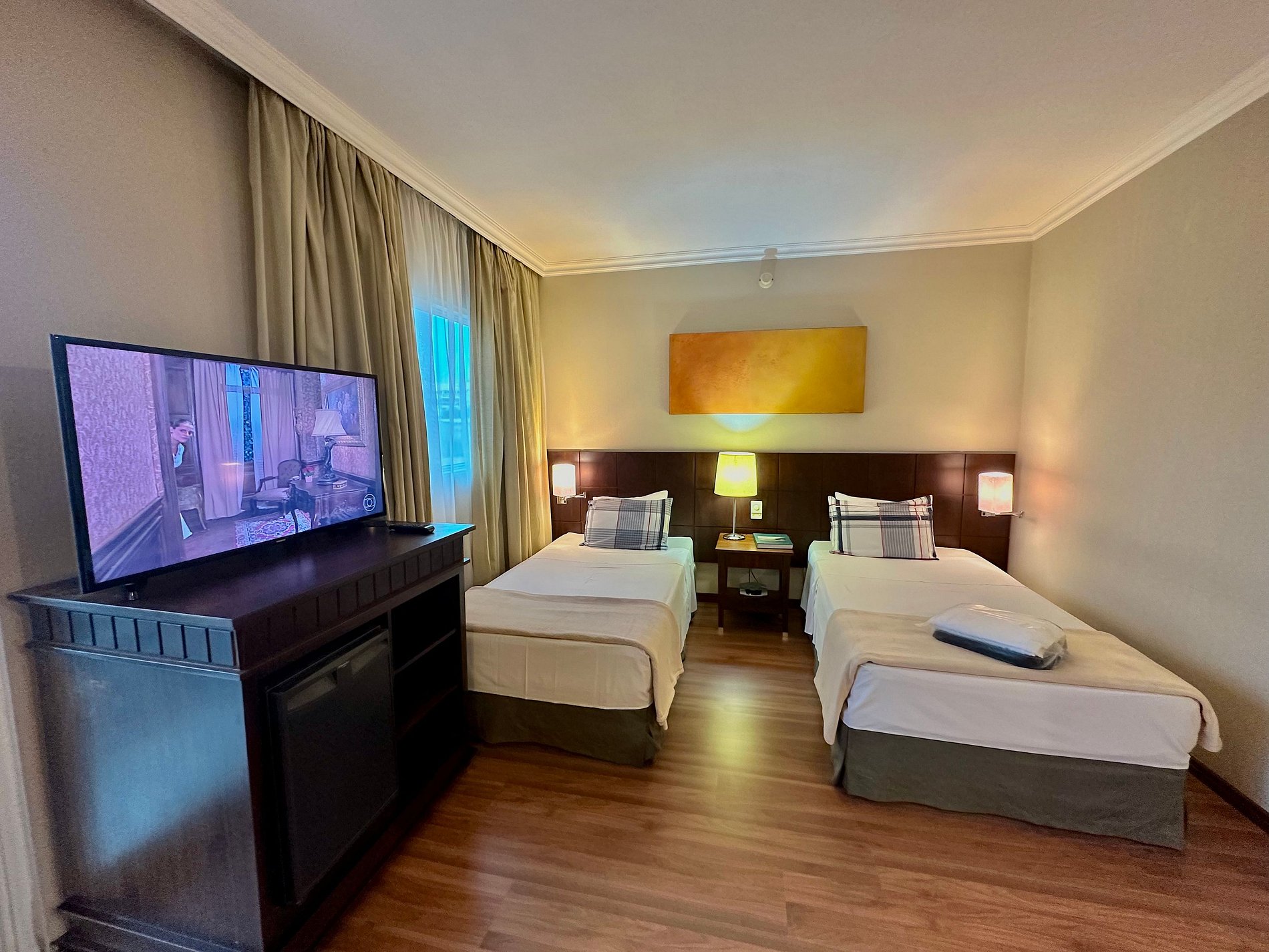 02 camas de solteiro King (que podem ser unidas para maior espaço) e Smart TV.