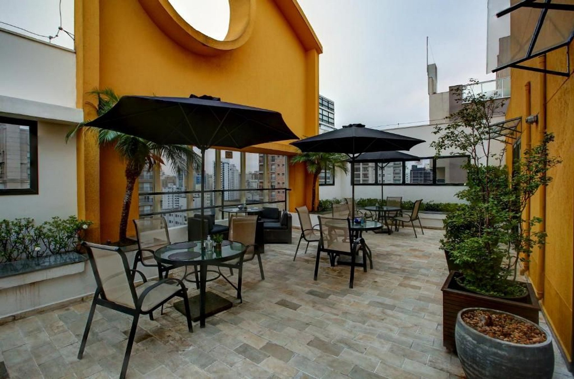 Espaço conta na cobertura com café da manhã a parte, piscina com vista, mini mercado e academia.